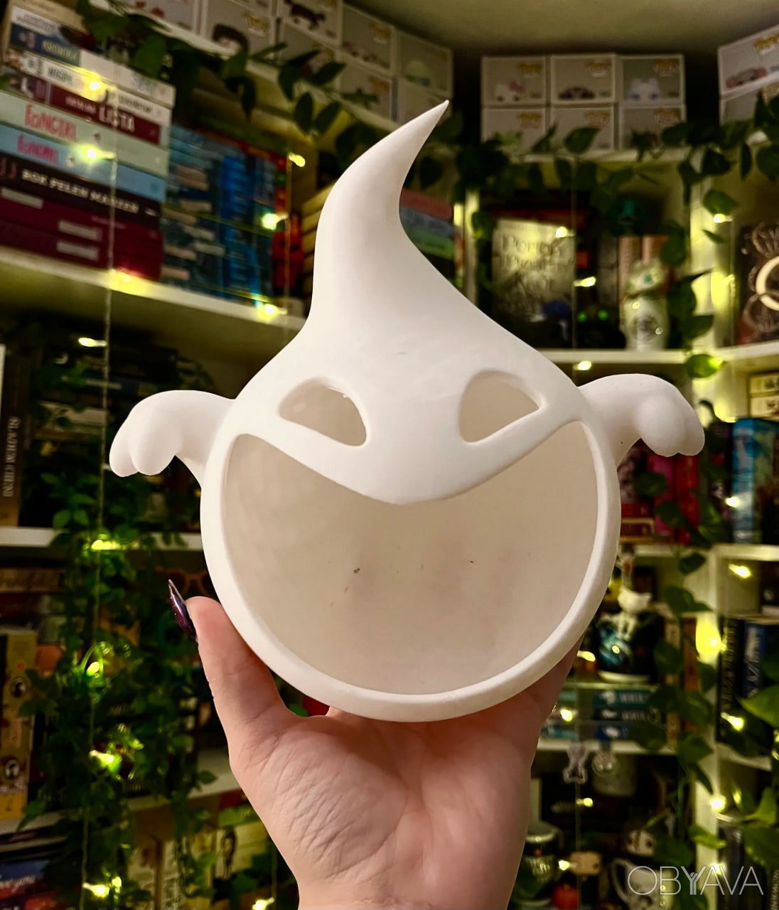 Ваза для цукерок та інших солодощів у формі привида. Розміри 201 мм - 214 мм - 147 мм ціна 520 гр ; 220 мм - 234 мм - 160 мм ціна 600 гр ; 230 мм - 245 мм - 168 мм ціна 670 гр . Кольори чорний, сірий, білий, рожевий, беж. Якщо цікавлять інщі кольори запитуйте!